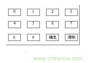 該系統(tǒng)采用4×3鍵盤(pán),包含0~9共10個(gè)數(shù)字鍵、一個(gè)“確定”鍵和一個(gè)“清除”鍵。操作流程為:輸入2位設(shè)定溫度,按下“確定”,將設(shè)定溫度輸入到AT89C51內(nèi)用戶(hù)自定義區(qū)某存儲(chǔ)單元,作為半導(dǎo)體制冷片的啟動(dòng)溫度。然后,同理再次輸入2位溫度,作為半導(dǎo)體制冷片的強(qiáng)制冷溫度。鍵盤(pán)工作原理:I/O口P1.0~P1.3充當(dāng)行選線(xiàn),P1.5~P1.7(外接上拉電阻到+5V電源)充當(dāng)列選線(xiàn)。初始化時(shí)P1.0~P1.3置低電位,P1.5~P1.7置高電位并等待按鍵。當(dāng)有鍵按下時(shí),相應(yīng)的列選線(xiàn)電平被強(qiáng)制拉低,讀相應(yīng)的行碼和列碼,則按鍵的編號(hào)即可確定。