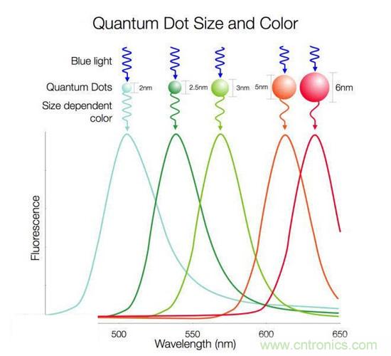 而傳說中的量子點顯示技術(shù)就是對背光方案做出變革:所謂的量子點,可以簡單認(rèn)為是長寬高都在100nm以下的材料(幾個原子的大小),這種極小的半導(dǎo)體晶體在激發(fā)后可以發(fā)光,至于究竟是怎么發(fā)光的,那是科學(xué)研究范疇,這里不做討論。比較靠譜的一個結(jié)論是,量子點的大小,與其所發(fā)出光的能量強度(波長)成正比。也就是說,量子點的直徑越小,激發(fā)后的光波長越短,也就是顏色偏藍,直徑越大則激發(fā)后的光波長越長,也就是顏色偏紅。