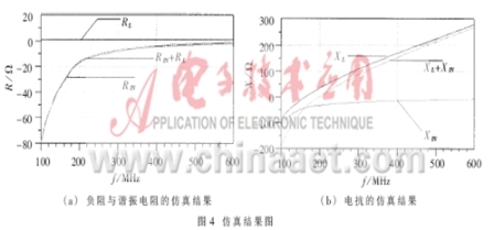 從圖4(a)的仿真結(jié)果可以看出,在200MHz附近,RIN+RL<0,所以滿足起振條件,由于RIN的負阻比較大,所以提供交流能量的能力比較強,故振蕩的幅度會比較大,這一點在后面的仿真和測試中可以得到證實。從圖4(b)可以看出,當f為200MHz左右時,XIN+XL=0,從而滿足相位平衡條件,它決定了振蕩的頻率。