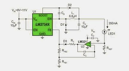 圖3:基于LM2734的恒流驅(qū)動電路。