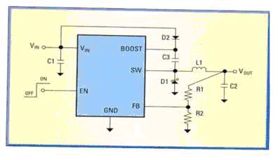 恒壓供電的基本電路(圖1左)采用反饋電阻RFB1和RFB2,當(dāng)負載電流發(fā)生變化時,VFB也隨之變化,DC/DC穩(wěn)壓器通過感知VFB的變化,使輸出電壓維持在一個固定的電平: