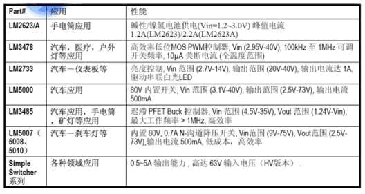 表2:美國國家半導(dǎo)體的LED驅(qū)動器解決方案一覽表