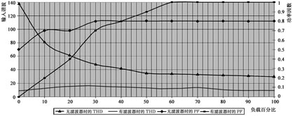 另外,不能在較寬的負(fù)載范圍內(nèi)降低諧波和提高功率因數(shù),它們通常在60%以上負(fù)載率時才有效,如圖2所示。在負(fù)載率低于40%時,輸入功率因數(shù)將變?yōu)槌?使得與發(fā)電機不兼容。輸入功率因數(shù)還隨市電電壓變化,參數(shù)表只是標(biāo)稱值。
