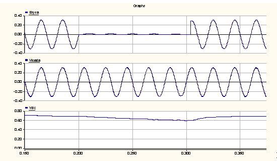 圖2.系統(tǒng)發(fā)生短時(shí)供電中斷時(shí),ASD運(yùn)行的仿真結(jié)果