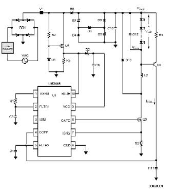 LM3445TRIAC調(diào)光LED驅(qū)動器,應(yīng)用電壓范圍從80VAC到270VAC,導(dǎo)通角檢測器/譯碼器可以實(shí)現(xiàn)寬全范圍的(100:1)調(diào)光,內(nèi)置3000Ω泄流電阻確保TRIAC信號譯碼無誤,正在申請注冊專利的調(diào)控架構(gòu)可確保恒定的紋波電流以延長LED的工作壽命,可調(diào)節(jié)輸出電流高至1A,可通過主/從操作方式控制多條燈串的亮度。