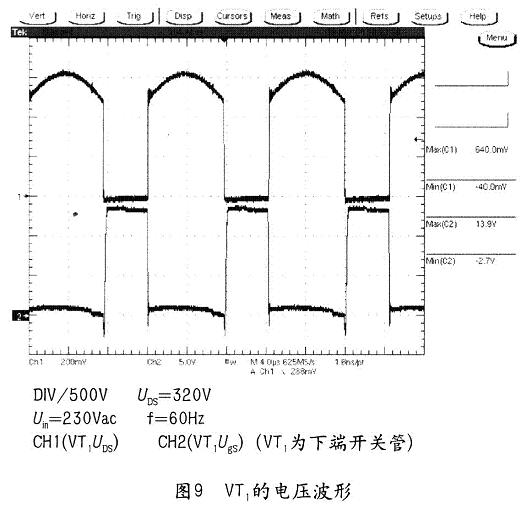 實(shí)際波形結(jié)果我們實(shí)際用一般雙晶體管正激的產(chǎn)品經(jīng)過(guò)改進(jìn),將其調(diào)整為上述的有源鉗位方式,其實(shí)際的雙晶體管工作波形如圖9~圖12所示。