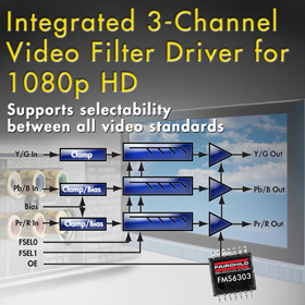 飛兆半導體擁有業(yè)界最廣泛的精選視頻濾波器和創(chuàng)新的開關矩陣產品系列,支持標清和高清視頻應用如機頂盒、DVD、電視和便攜式多媒體設備。這些集成式產品支持全部視頻標準和信道配置,并可替代多個分立組件和節(jié)省寶貴的電路板空間。FMS6303采用14腳TSSOP封裝,其引腳與飛兆半導體成功的FMS6203可選SD、ED、1080i HD視頻濾波器兼容。