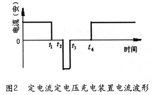 第二控制信號是開始去極化信號,它經(jīng)過放電前停止充電延時電路延時(t1-t2)后,發(fā)出放電開始脈沖,打開放電開關(guān),蓄電池開始向放電電阻放電并經(jīng)過放電延時電路延時(t2-t3)后,發(fā)出放電關(guān)脈沖,結(jié)束放電。依次重復(fù)進行充放電過程,直至充電結(jié)束。第三個控制信號送給開始放電計時器,使其從第一次去極化放電開始計時,到預(yù)定的時間后結(jié)束充電,自動關(guān)機。用這種方法充電,蓄電池的充電和放電電流波形如圖2所示。上述兩種方法是蓄電池充電方法的改進方向。我國采用的快速充電方案很多,性能差異很大。各種充電方法對蓄電池的壽命影響也大不相同。這兩種方法在理論上比較適合對蓄電池充電的要求。