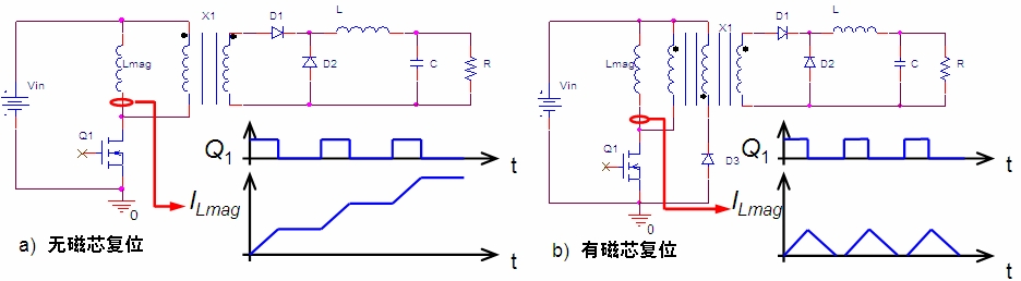 - 比較三次繞組、RCD鉗位及雙開關正激等常見的磁芯復位技術;