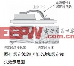 通常,逆變器設(shè)計(jì)主要考慮IGBTTjmax(最高結(jié)溫)的限制,但在混合動(dòng)力車應(yīng)用中,逆變器較少處于恒定工況,加速、巡航、減速都會(huì)帶來(lái)電流、電壓的改變,由此帶來(lái)的ΔTj(結(jié)溫快速變化)將會(huì)更大程度影響IGBT的壽命,IGBT導(dǎo)通電流波動(dòng)時(shí),綁定線也會(huì)隨之?dāng)[動(dòng),對(duì)綁定線和IGBT芯片連接可靠性有較大的影響,反復(fù)的擺動(dòng)可能導(dǎo)致綁定線壽命的耗盡(EOL,EndofLife),例如綁定線和IGBT芯片焊接脫落、綁定線斷裂等,直接導(dǎo)致IGBT的損壞。