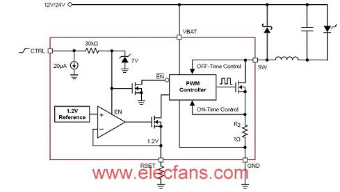 圖2:CAT4201高集成度350mALED降壓驅(qū)動器,可以驅(qū)動多達(dá)7顆LED