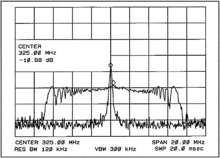 ---利用時(shí)鐘發(fā)生器中PLL的特性,以圖2所示的Lexmark曲線,以系統(tǒng)時(shí)鐘為中心作小幅度的調(diào)變,將可使EMI的能量平均散布在一小段的頻譜范圍中,以降低單一頻率EMI的峰值,如圖3所示。