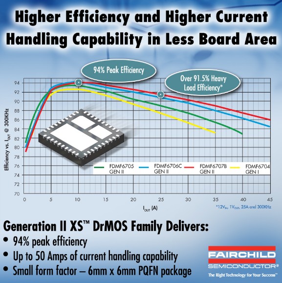 飛兆半導(dǎo)體Generation II XS DrMOS系列器件提供業(yè)界領(lǐng)先技術(shù),以應(yīng)對現(xiàn)今電子設(shè)計所遇到的能效和外形尺寸挑戰(zhàn)。這些器件是飛兆半導(dǎo)體高能效的功率模擬、功率分立和光電子解決方案的一部分,能夠在功率敏感應(yīng)用中實現(xiàn)最大節(jié)能。