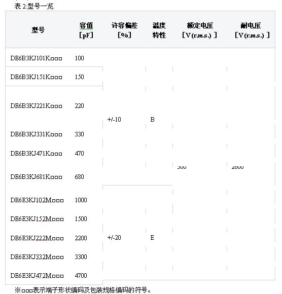 產(chǎn)品線如表2所示,產(chǎn)品結(jié)構(gòu)如圖1所示。產(chǎn)品的容值從100pF到4700pF,另外,額定電壓為AC300V (r.m.s.) 、耐電壓為AC2600V (r.m.s.) /60sec。滿足IEC 60384-14所規(guī)定的實驗條件,通過新樹脂材料的絕緣涂裝,提高了耐溫度循環(huán)特性,能夠成為PHEV以及EV的車載充電器的AC線路濾波器用Y電容器、初級次級耦合用電容器,如圖2所示。