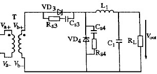 當主開關(guān)管VS 關(guān)斷時,勵磁電流流經(jīng)磁復位電路。變壓器次級電壓反向,VS1 和VS3 關(guān)斷。VS2 的柵2源極寄生電容由流經(jīng)VD 的電流充電。輸出電流由VS2 續(xù)流。在t2 時刻,磁復位結(jié)束,變壓器次級電壓為零。因為VD1 承受反壓截止,VS3 關(guān)斷,VS2 的柵極驅(qū)動電壓不變,因此即使變壓器次級電壓為零,VS2 保持導通續(xù)流。VS2 柵極驅(qū)動電壓一直保持到下一個開關(guān)周期開始,且VS3 導通之時。這就解決了死區(qū)時間內(nèi)體二極管導通的問題。