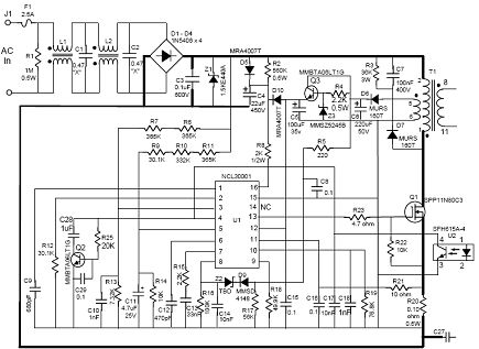 圖2:NCL30001 CVCC 90 W演示板初級側(cè)原理圖
