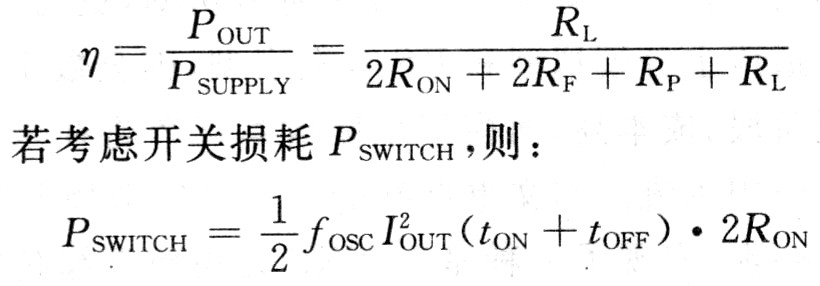 假設(shè)D類功放MOSFET導(dǎo)通電阻為RON,所有其他無源電阻為RP,濾波器電阻為RF,負載電阻為RL,則不考慮開關(guān)損耗的效率為: