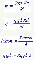 其中:Qgd = 門或漏極電荷;Kd = 常數(shù);Id = 在門閥值上的門驅(qū)動電流;A = 裸片面積;