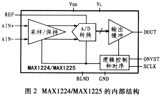 MAXl224/MAXl225系列12位模/數(shù)轉(zhuǎn)換器(ADC)具有低功耗、高速、串行輸出等特點,其采樣速率最高可達1.5Ms/s,在+2.7V至+3.6V的單電源下工作,需要1個外部基準源;可進行真差分輸入,較單端輸入可提供更好的噪聲抑制、失真改善及更寬的動態(tài)范圍;同時,具有標準SPITM/QSPITM/MI-CROWWIRETM接口提供轉(zhuǎn)換所需的時鐘信號,可以方便地與標準數(shù)字信號處理器(DSP)的同步串行接口連接。