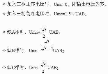 按負序過濾器的工作原理,從上述公式中,可得出,在標準電壓輸入下,可以計算出相關(guān)輸出電壓Umn值,見表1