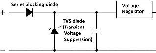為了保護電子模塊不因蓄電池極性接反而損壞,常用的解決方案是使用一個正向?qū)ǎㄕ鳎┒O管來防止電流反向流動(見圖1)。