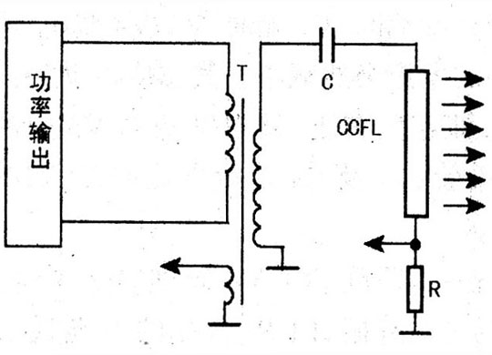 在背光板驅(qū)動(dòng)電路中,前級(jí)(振蕩器和調(diào)制器)和功率輸出部分基本上是工作在開(kāi)關(guān)狀態(tài)(因開(kāi)關(guān)狀態(tài)工作效率高,輸出功率大),輸出信號(hào)基本也是開(kāi)關(guān)信號(hào)。燈管的最佳供電電壓波形應(yīng)是正弦波,為了保證燈管工作在最佳狀態(tài)(對(duì)于發(fā)光亮度及壽命是非常重要的),因此必須把功率輸出級(jí)輸出的方波信號(hào)變換為正弦波,這一過(guò)程簡(jiǎn)稱正弦化過(guò)程,其具體處理方式有兩種:一是在高壓變壓器高壓輸出端進(jìn)行處理,二是在高壓變壓器低壓輸入端進(jìn)行處理。目前,大多采用后一方式,而前一種方式多用于早期的背光燈驅(qū)動(dòng)板中,下面分別進(jìn)行介紹。