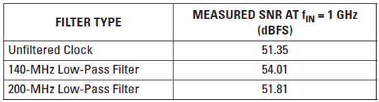 表 5 90-fs 時(shí)鐘抖動和 RF 放大器的 SNR 結(jié)果