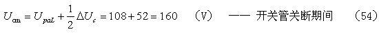 當(dāng)考慮電阻R對電容器C充電的分流作用,以及開關(guān)管由導(dǎo)通到完全關(guān)斷期間,漏極電流對電容器C充電的分流作用時,根據(jù)(36)式,假設(shè)分流系數(shù)r = 0.5 ,則(52)式還可改寫為: