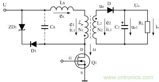 當(dāng)輸入電壓為最大值(AC260V)的時候,其占空比大約只有0.3左右,因此,電容器充電的時間要比放電的時間長很多;但在電容器還充電期間變壓器初級線圈會出現(xiàn)斷流,這相當(dāng)于電容器會提前放電,其結(jié)果與占空比等于0.5時的結(jié)果基本相同。但做試驗(yàn)時,最好還是以輸入電壓為最大值時為準(zhǔn)。如電阻R的值取得小些,相當(dāng)于分流系數(shù)r降低,這對降低開關(guān)管的關(guān)斷損耗是有好處的,因?yàn)椋_關(guān)變壓器漏感儲存的磁能量,一部分是通過開關(guān)管關(guān)斷時產(chǎn)生的損耗來釋放的,另一部分則是通過RCD回路中的電容充電和電阻分流來進(jìn)行釋放;但電阻的阻值取得太小,又會從勵磁電感線圈吸收能量,降低開關(guān)電源的工作效率。