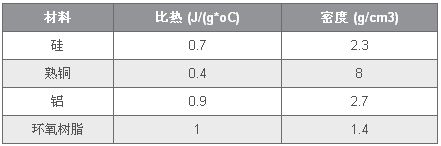 表1列出了一些常見材料及其比熱和密度,其或許有助于建模熱插拔器件內(nèi)部的散熱電容。