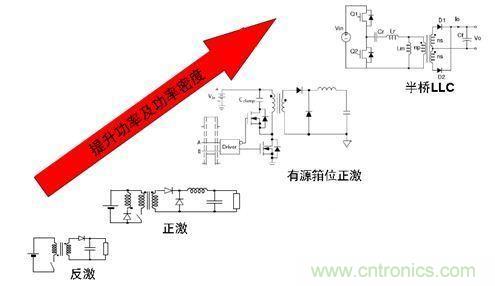 圖2. 隨著功率及功率密度的提升,半橋LLC拓?fù)涑蔀長ED路燈驅(qū)動理想選擇