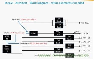 雖然完全令人滿意,但這種方法可能會(huì)變得有點(diǎn)單調(diào)乏味。為了簡化設(shè)計(jì)流程和節(jié)省時(shí)間,Vicor最近推出了PowerBench白板工具(whiteboard)。白板工具是利用一組合適的Vicor電源轉(zhuǎn)換元件設(shè)計(jì)和分析電源系統(tǒng)的一個(gè)在線工具。利用白板工具就不再需要查看包含在數(shù)據(jù)表中的運(yùn)行和效率參數(shù),工程師只需利用在線工具繪制出電路框圖,所有計(jì)算即可在幾毫秒內(nèi)完成。