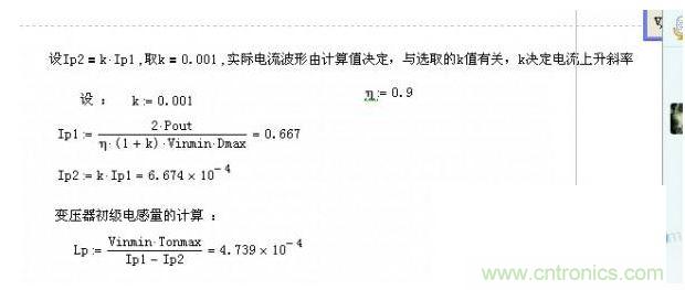 K值就是上面說的電流連續(xù)比上面計(jì)算書定義的Ip2是電流上升前沿Ip1是電流上升后沿。所以當(dāng)K=0的時(shí)候變壓器是工作在臨界模式以下的為防止計(jì)算出錯一般習(xí)慣取0.001.