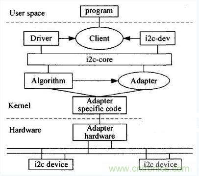 圖5 Linux內(nèi)核I2C總線(xiàn)驅(qū)動(dòng)程序體系結(jié)構(gòu)