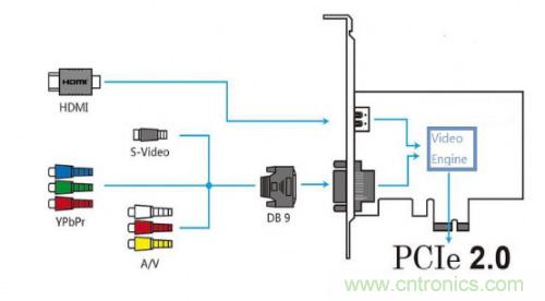 圖一是目前視頻采集卡非常主流的硬件架構(gòu),Vedio Engine包括視頻編解碼器和FPGA,協(xié)議以及算法都由FPGA來(lái)實(shí)現(xiàn),后面通過FPGA的Serdes接口送出到電腦,采用X4 PCIE2.0總線協(xié)議。世強(qiáng)市場(chǎng)經(jīng)理表示:PCIE總線發(fā)展到現(xiàn)在經(jīng)歷了3代,分別是GEN1 2.5GT/S, GEN2 5GT/S, GEN3 8GT/S,如果設(shè)置成X4,GEN2就可以滿足20GT/S的帶寬,基本可以滿足目前主流高清帶寬需求,所以主流的視頻采集卡都采用PCIE2.0。