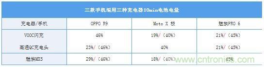 測(cè)試手機(jī):OPPO R9、Moto X 極、魅族PRO 6,充電頭:VOOC閃充頭、高通官方QC充電頭、魅族MX5充電頭(UP1220)。其中(OPPO R9應(yīng)搭配VOOC閃充頭使用:VOOC閃充協(xié)議);(Moto X 極應(yīng)搭配高通官方QC充電頭使用:QC2.0快充協(xié)議);(魅族PRO 6應(yīng)搭配MX5充電頭使用:聯(lián)發(fā)科PEP快充協(xié)議)。