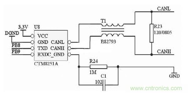 圖2.CAN接口硬件電路圖