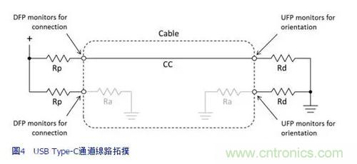 連接裝置之間的初始電力傳輸協(xié)議是透過(guò)一系列電阻器執(zhí)行,當(dāng)Type-C插頭插入插座時(shí),這些電阻器充當(dāng)CC線路上的分壓器。由于插頭中的CC線路會(huì)連接至插座中的CC1或CC2,因此插座只要測(cè)量CC1和CC2線路上的電壓,即可判定插頭的方向。上拉電阻的不同數(shù)值可傳達(dá)電源能夠提供的電流量,同時(shí)可確定UFP和DFP分別是什么。電力消耗裝置沒有辦法透過(guò)不同的下拉電阻值指出其消耗的電流量,而是必須不斷地調(diào)整其負(fù)載以符合電源供應(yīng)器可提供的最大電流。