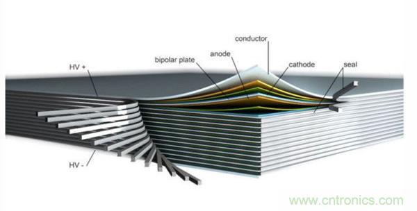 如今,電池儼然成為了決定電動(dòng)車未來的核心部件,這也不難理解那么多的電池制造商在電池技術(shù)上絞盡腦汁、期望有所重大突破,并且制定各種野心勃勃發(fā)展目標(biāo),例如:將電池系統(tǒng)的能量密度從250Wh/L左右提升到500Wh/L、同時(shí)大幅度降低生產(chǎn)成本。一方面,電池材料需要進(jìn)一步優(yōu)化,提高電池能量密度,另一方面,電池空間體利用需要提高、減小有限空間內(nèi)的非活性材料?,F(xiàn)有的電池封裝package方式造成了大量的體積被非電池活性材料占據(jù),無法充分利用有限的電池空間。為了實(shí)現(xiàn)這個(gè)目標(biāo), IAV公司與 Thyssenkrupp AG和Fraunhofer Institute for Ceramic Technologies and Systems(IKTS)一起合作開發(fā)汽車底盤電池集成項(xiàng)目( EMBATT:chassis-embedded energy),直接將電池嵌入到汽車底盤,大幅度減少電池本身的結(jié)構(gòu)件所占據(jù)的體積,達(dá)到提高能量密度Wh/L的目標(biāo)。EMBATT概念的中心思想是采用雙極性bipolar鋰離子電池。在這個(gè)合作開發(fā)項(xiàng)目中,IAV主要負(fù)責(zé)車輛開發(fā),包括車輛概念、測(cè)量安全、電池布局和設(shè)計(jì)、控制軟件標(biāo)定。IKTS主要負(fù)責(zé)定制化電池材料和電極的制造加工技術(shù)。Thyssenkrupp AG主要負(fù)責(zé)后期的電池生產(chǎn)。