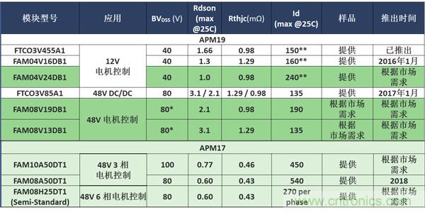 安森美半導(dǎo)體標(biāo)準(zhǔn)的APM19和APM17汽車模塊陣容如表4所示。