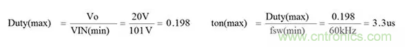 假設(shè)最大輸入電壓264VAC時的最小導(dǎo)通時間為1µs,則: