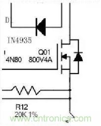 這個(gè)方法卻是錯(cuò)誤的。為什么?因?yàn)檫@個(gè)反壓尖峰并不是二極管引起的,盡管表現(xiàn)是在這里。這時(shí)只要加強(qiáng)MOS管的吸收或者采取其他適當(dāng)?shù)拇胧?,這個(gè)尖峰就會(huì)消失或者削弱。