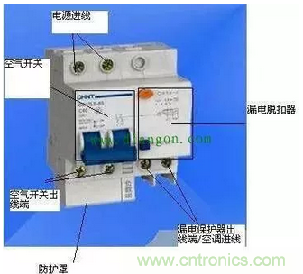 第三種情況是漏電保護(hù)開關(guān)本身正著安裝但是接線是反著安裝的: