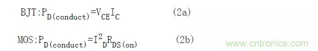 控制這個損耗的典型方法是使功率開關(guān)導(dǎo)通期間的電壓降最小。要達到這個目的,設(shè)計者必須使開關(guān)工作在飽和狀態(tài)。這些條件由式(2a)和式(2b)給出,通過基極或柵極過電流驅(qū)動,確保由外部元器件而不是功率開關(guān)本身對集電極或漏極電流進行控制。
