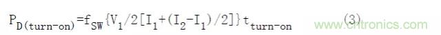 這個結(jié)果只是功率開關(guān)開通期間的損耗值,再加上關(guān)斷和導(dǎo)通損耗可以得到開關(guān)期間的總損耗值。