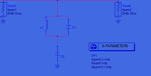 圖4 DCS頻段輸入濾波網(wǎng)絡(luò)仿真原理圖。