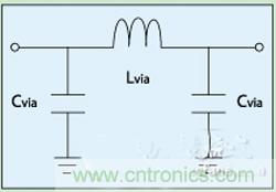 接地層確定后,將所有的信號地以最短的路徑連接到地層非常關鍵,通常用過孔將頂層的地線連接到地層,需要注意的是,過孔呈現(xiàn)為感性。圖3所示為過孔精確的電氣特性模型,其中Lvia為過孔電感,Cvia為過孔PCB焊盤的寄生電容。如果采用這里所討論的地線布局技術,可以忽略寄生電容。一個1.6mm深、孔徑為0.2mm的過孔具有大約0.75nH的電感,在2.5GHz/5.0GHz WLAN波段的等效電抗大約為12Ω/24Ω。因此,一個接地過孔并不能夠為RF信號提供真正的接地,對于高品質的電路板設計,應該在RF電路部分提供盡可能多的接地過孔,特別是對于通用的IC封裝中的裸露接地焊盤。不良的接地還會在接收前端或功率放大器部分產(chǎn)生有害的輻射,降低增益和噪聲系數(shù)指標。還需注意的是,接地焊盤的不良焊接會引發(fā)同樣的問題。除此之外,功率放大器的功耗也需要多個連接地層的過孔。