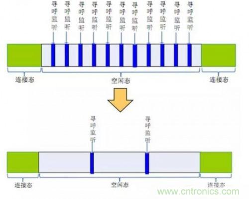 eDRX即非連續(xù)接收,是3GPP R13引入的新技術(shù)。R13之前已經(jīng)有DRX技術(shù),從字面上即可看出,eDRX是對原DRX技術(shù)的增強(qiáng):支持的尋呼周期可以更長,從而達(dá)到節(jié)電目的。繼續(xù)借圖:
