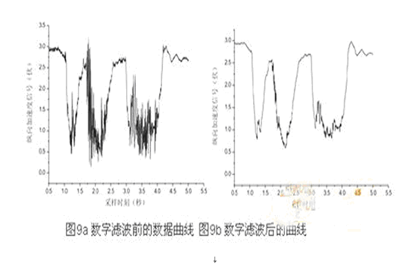 調(diào)整圖8中各個(gè)阻容元件的參數(shù),即可設(shè)置濾波截止頻率和延時(shí)大小。汽車運(yùn)行過(guò)程中,在較好路面上行駛時(shí),由于信號(hào)較好,延時(shí)盡量要小,而在顛簸路面上行駛,則希望濾波效果要好。但是由于硬件濾波的頻率特性一經(jīng)設(shè)計(jì)完畢,無(wú)法實(shí)時(shí)修改,故需要在軟件中設(shè)計(jì)數(shù)字濾波環(huán)節(jié)。數(shù)字濾波常用的有維納濾波器、卡爾曼濾波器、線性預(yù)測(cè)器、自適用濾波器等。在這里選用計(jì)算量小、實(shí)時(shí)性能好的一階低通濾波。