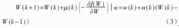 其中,μ(k)為學(xué)習(xí)率,α(k)為動(dòng)量因子,也稱為遺忘因子,又稱動(dòng)量項(xiàng)或阻尼項(xiàng)。將其稱為遺忘因子可從對(duì)于新舊信息的學(xué)習(xí)與遺忘的角度來理解;稱為動(dòng)量項(xiàng)或阻尼項(xiàng)是因?yàn)樵诰W(wǎng)絡(luò)的學(xué)習(xí)訓(xùn)練中,此項(xiàng)相當(dāng)于阻尼力,當(dāng)訓(xùn)練誤差迅速增大時(shí),它使網(wǎng)絡(luò)發(fā)散得越來越慢??傊?,它使網(wǎng)絡(luò)的變化趨于穩(wěn)定,有利于網(wǎng)絡(luò)的收斂。
